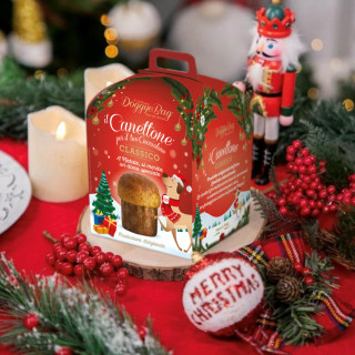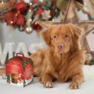 Il Canettone è una gustosa proposta per festeggiare insieme al tuo cucciolone la Gioia del Natale! È un prodotto artigianale da forno lievitato naturalmente. La ricetta è formulata appositamente per il tuo amico a quattro zampe e ha una consistenza che asseconda la sua masticazione. È proposto in un elegante e raffinato bauletto natalizio.